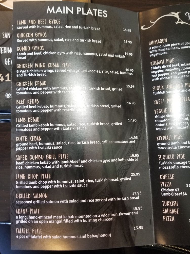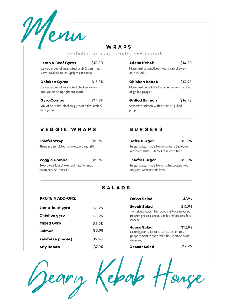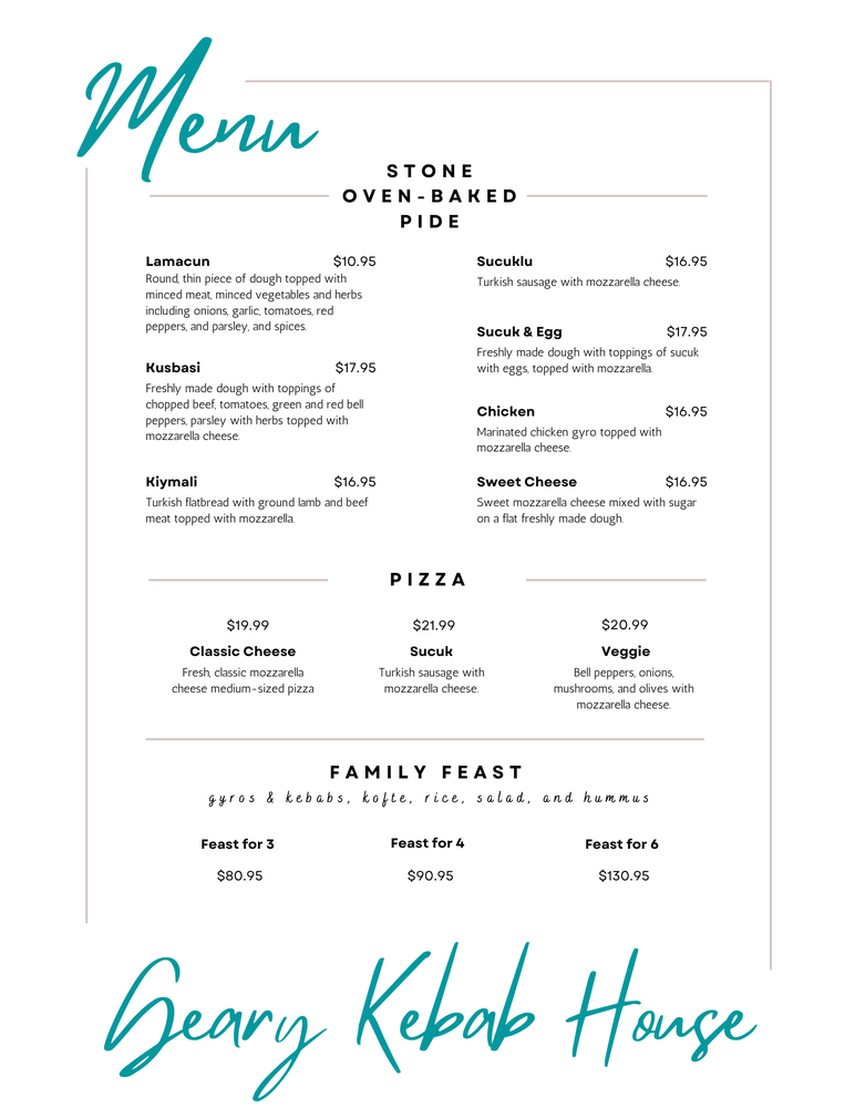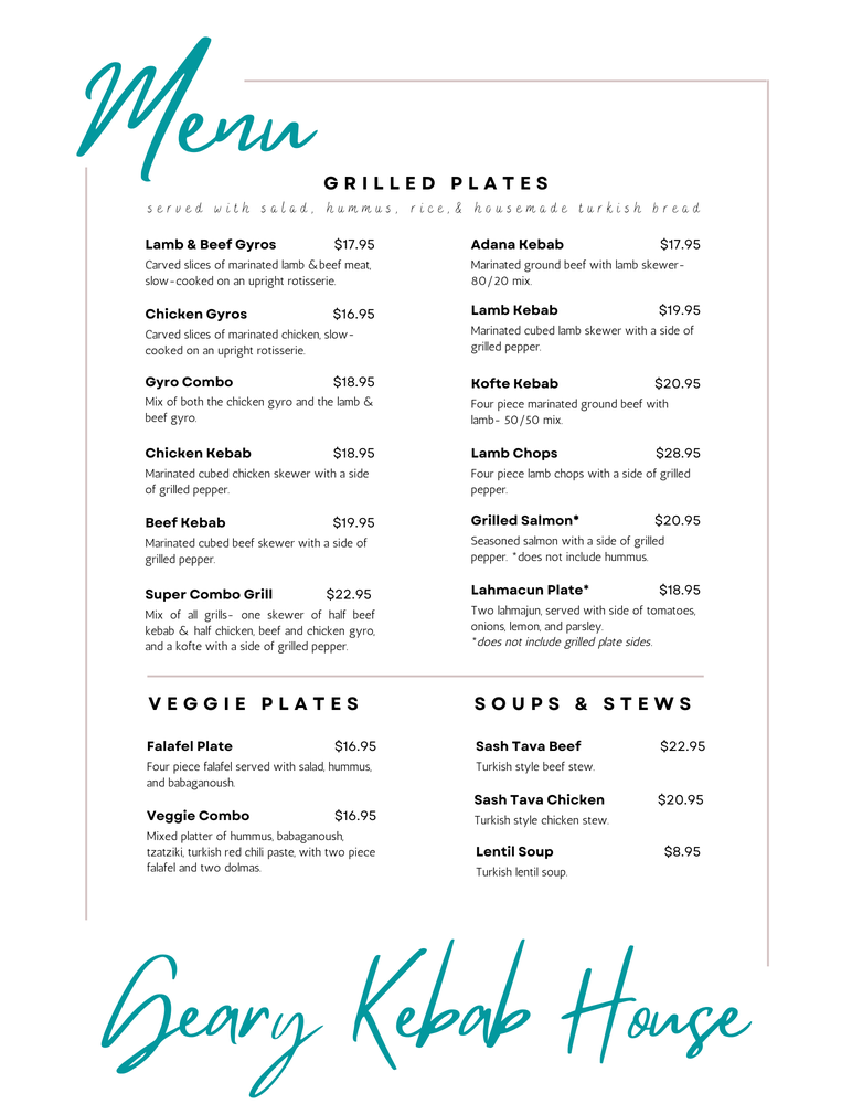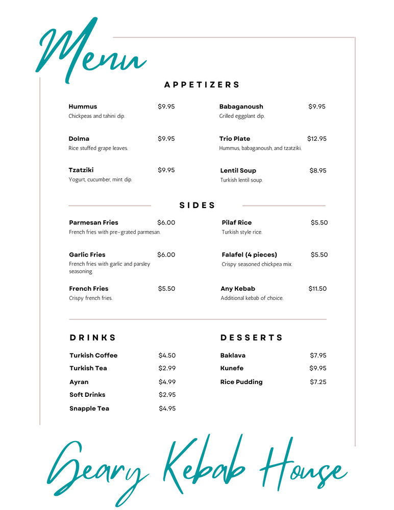 Geary Kebab House Menu